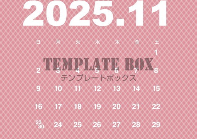 2025年11月カレンダー:横型のピンクがかわいいカレンダー