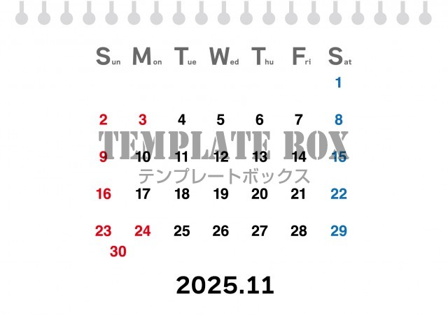 2025年11月カレンダー:シンプルベースの使いやすいカレンダー