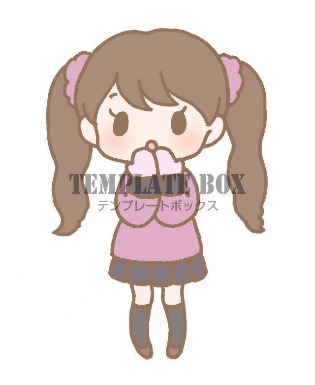 無料イラスト素材:寒いので手を温めている女の子のワンポイントイラスト