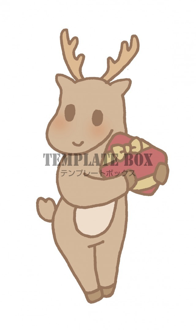 無料イラスト素材:クリスマスプレゼントを持ったトナカイのワンポイントイラスト