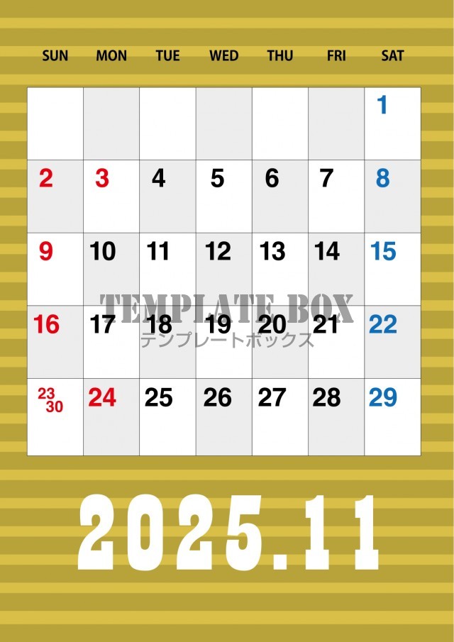 2025年11月カレンダー:横型ストライプ柄おしゃれカレンダー