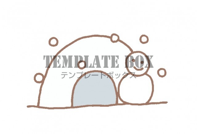 無料イラスト素材:冬のイラスト・かまくらと雪だるまのワンポイントイラスト