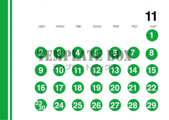 無料テンプレート:2025年11月カレンダー:緑のカラーがかわいいモダンデザイン