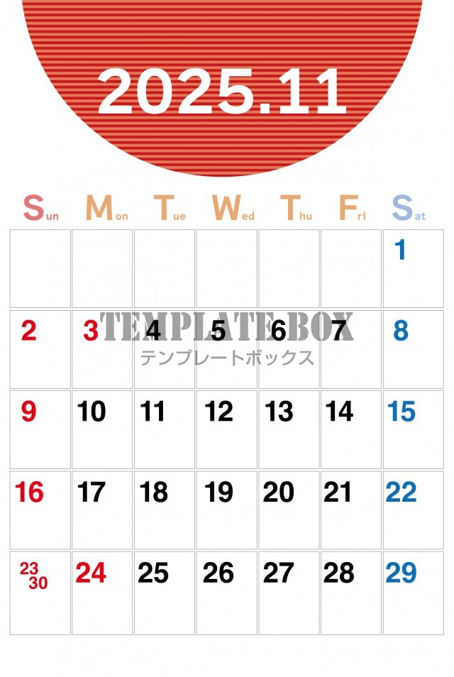 かわいいカラフルだけどシンプルカレンダーです。2025年11月カレンダー…