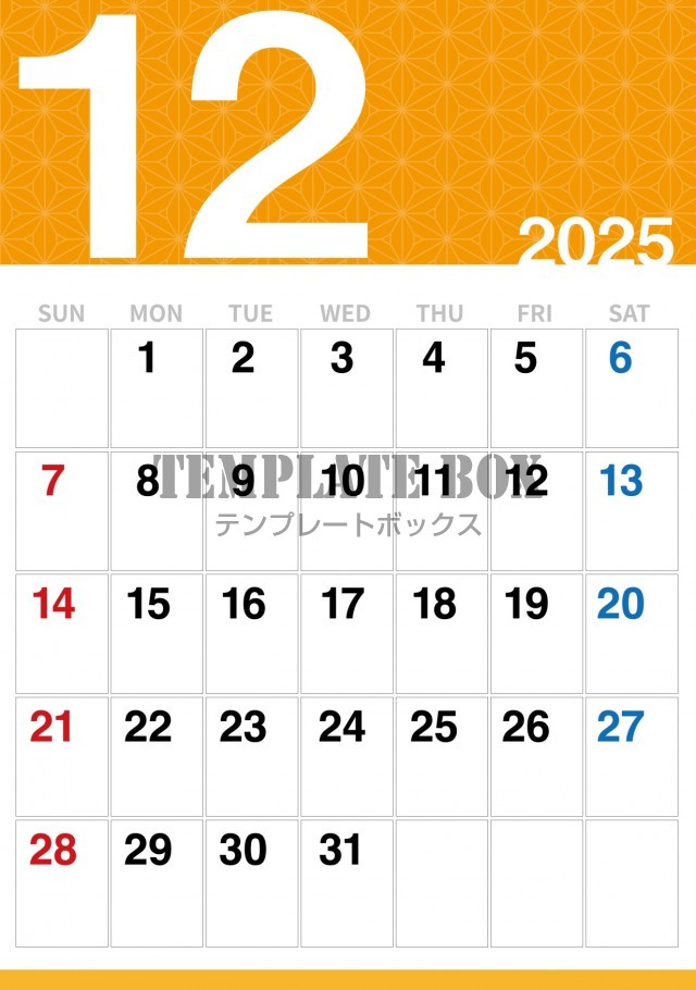 青海波柄がかわいい縦型カレンダー素材です。2025年12月カレンダーです…