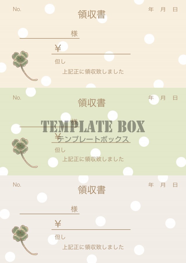無料テンプレート:クローバーのワンポイント入りのシンプルな領収書のテンプレート