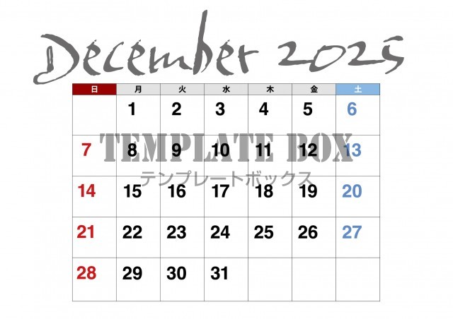 無料テンプレート:2025年12月カレンダー:横型のスケジュール管理に最適なカレンダー