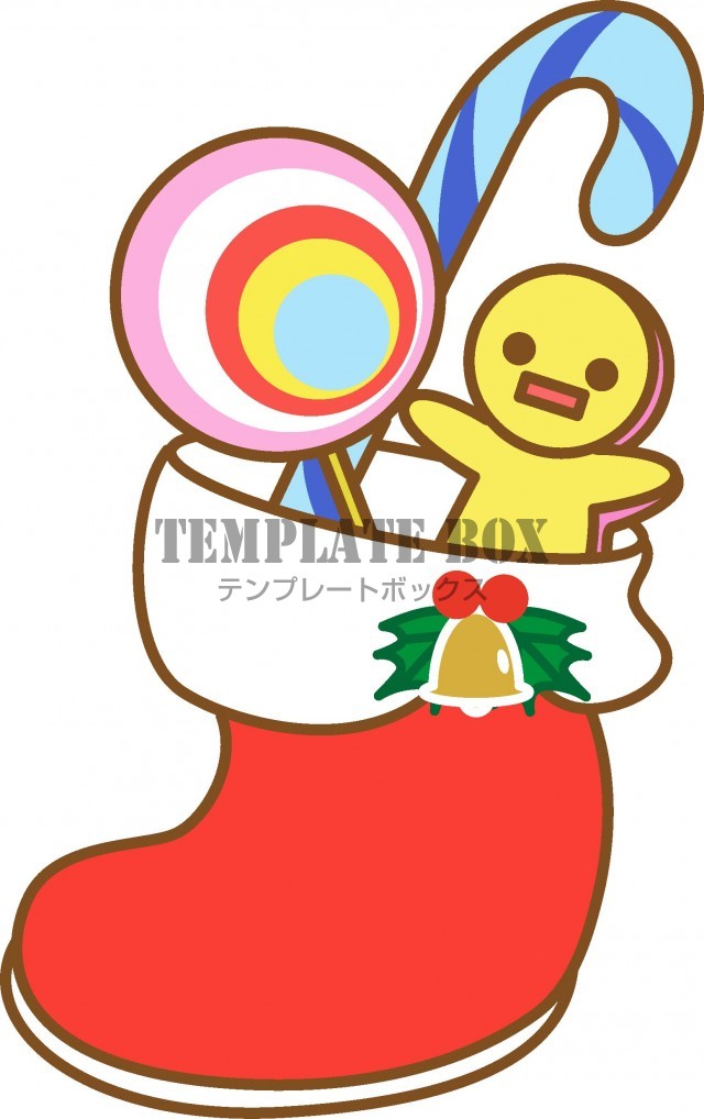 無料イラスト素材:12月のイメージイラスト、赤いかわいいお菓子のブーツ