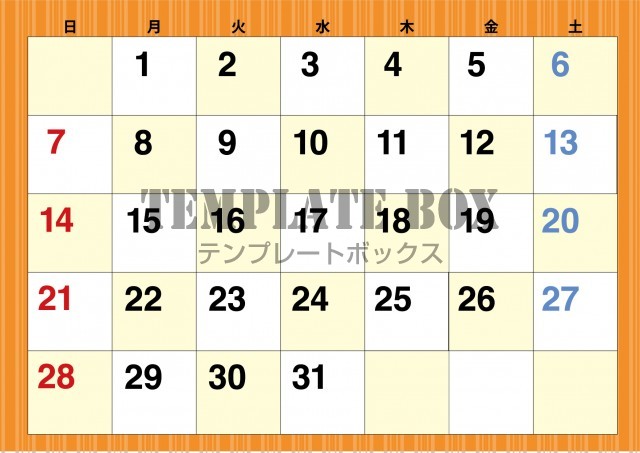 無料テンプレート:2025年12月カレンダー:横型のオレンジカラーのカレンダー