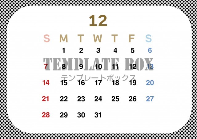 2025年12月カレンダー:縦型のドット柄のカレンダー