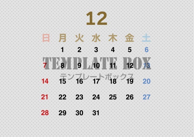 無料テンプレート:2025年12月カレンダー:横型のグレーのみやすいカレンダー