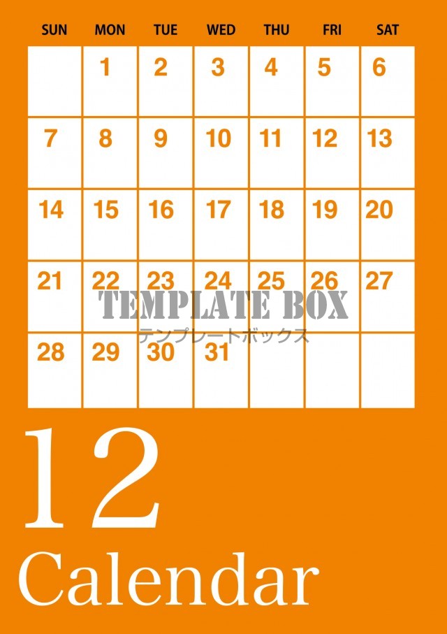 無料テンプレート:2025年12月カレンダー:オレンジ色がおしゃれなカレンダー