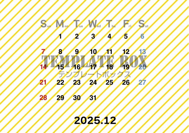 黄色の背景がかっこいい2025年12月カレンダーです。シンプルな素材です…