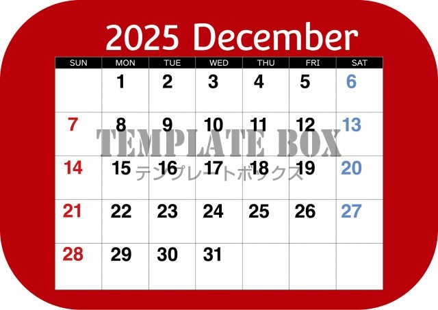 2025年12月カレンダー:横型赤がかっこいいカレンダー