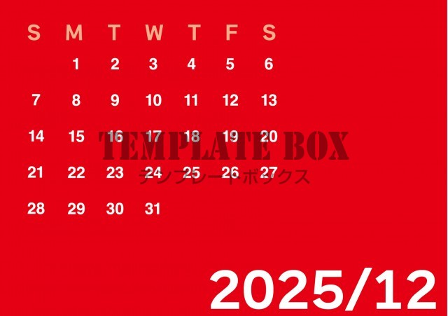 無料テンプレート:2025年12月カレンダー:横型赤がかっこいいカレンダー