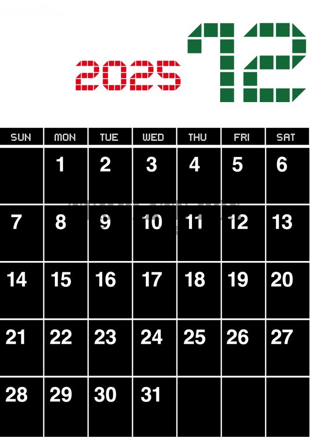 2025年12月カレンダー素材です。オフィスやご自宅用としてご利用いただ…
