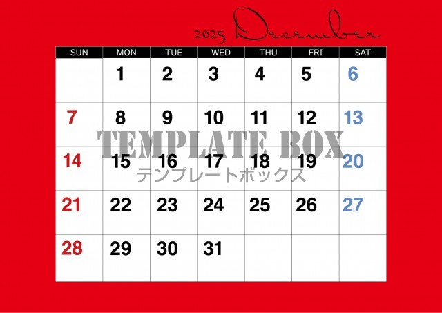 2025年12月カレンダーです。シンプルなデザインで誰にでも親しみのある…