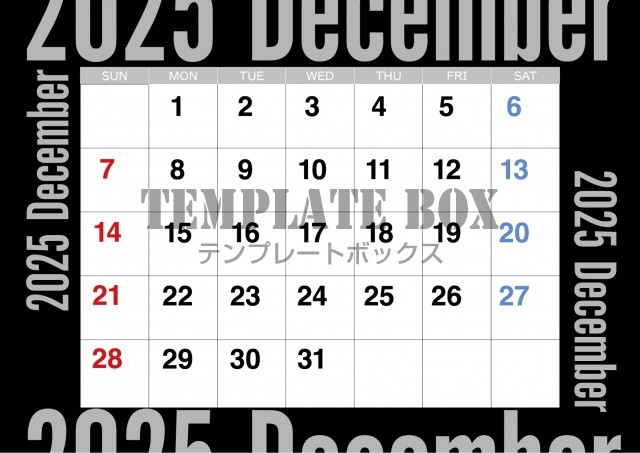 2025年12月カレンダー:モノクロのおしゃれなカレンダー