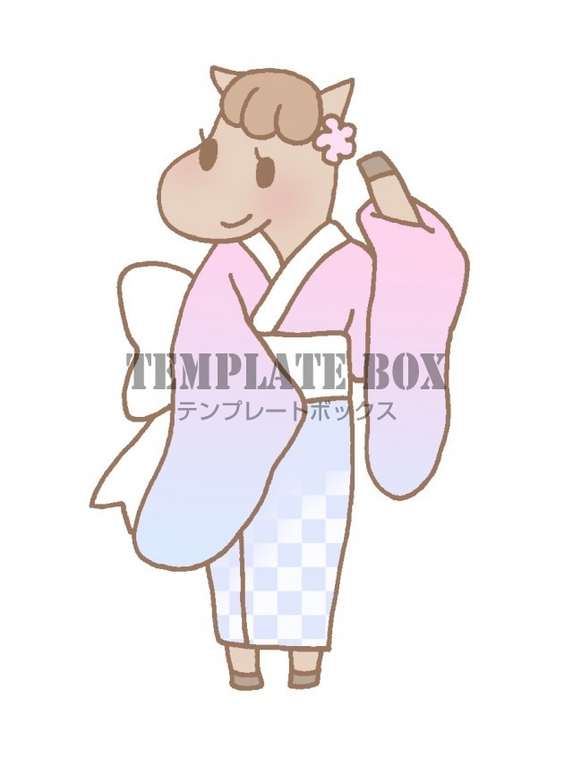 無料イラスト素材:振袖を着ているかわいい馬の女の子のワンポイントイラスト