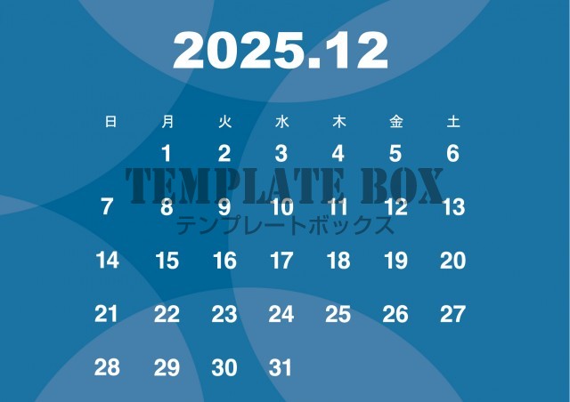 2025年12月カレンダー:横型の日付を丸で囲ったカレンダー