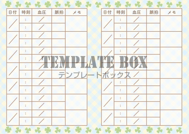 無料テンプレート:チェック柄とクローバーのかわいい血圧手帳のテンプレート素材
