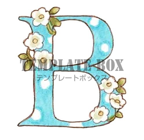 無料イラスト素材:お花とドットがかわいいイニシャルBのワンポイントイラスト