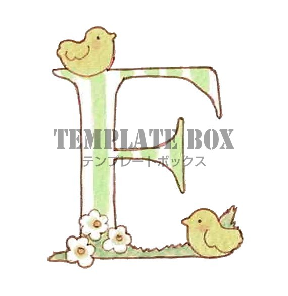 無料イラスト素材:ひよことお花がかわいいイニシャルEのワンポイントイラスト