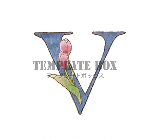 無料イラスト素材:チューリップがかわいいイニシャルVのワンポイントイラスト