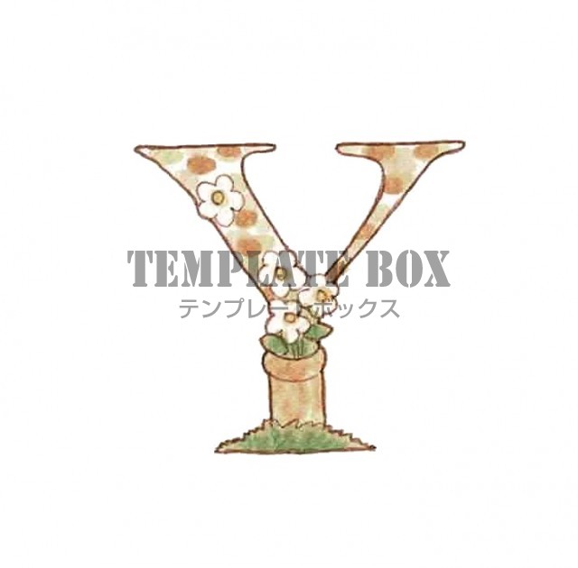 無料イラスト素材:鉢に入ったお花がかわいいイニシャルYのワンポイントイラスト