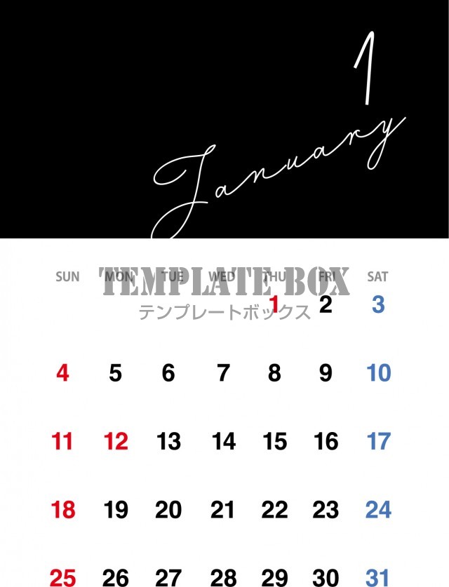 縦型の筆記体とおしゃれなデザインが素敵なカレンダー素材です。シンプルなデ…