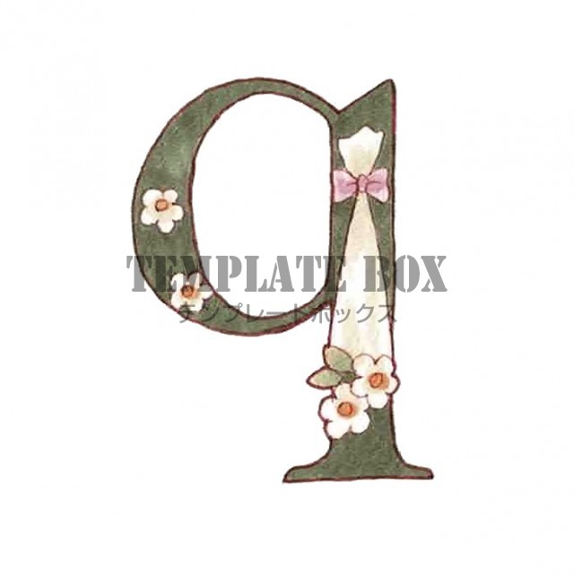 無料イラスト素材:お花がかわいい小文字のqのワンポイントイラスト