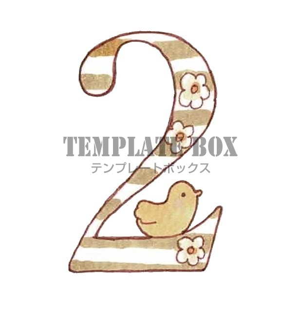 無料イラスト素材:ひよことお花がかわいい数字の2のワンポイントイラスト