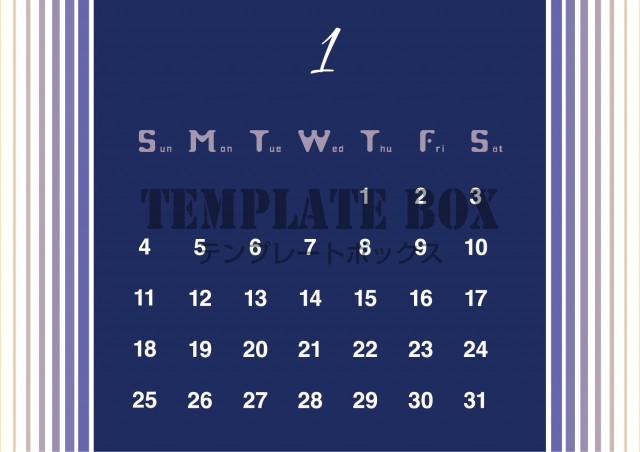 2026年1月カレンダー:縦型のストライプ柄のカレンダー