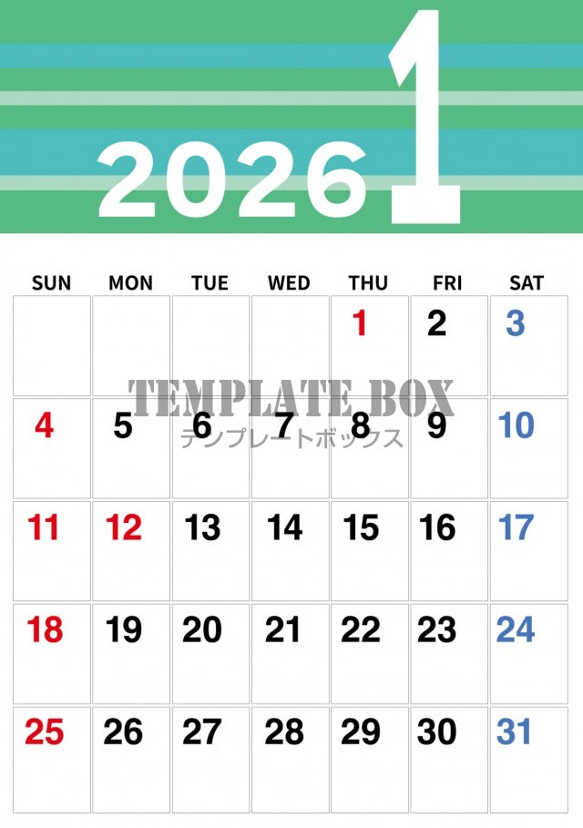 無料テンプレート:2026年1月カレンダー:予定管理に最適カレンダー