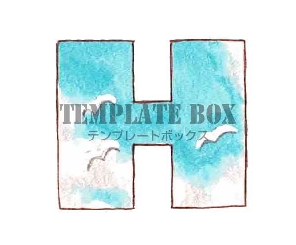 無料イラスト素材:空とカモメモチーフのフォントのアルファベットHのワンポイント