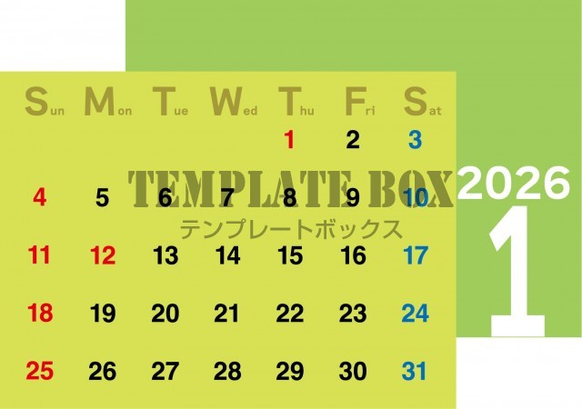 無料テンプレート:2026年1月カレンダー:おしゃれなカレンダー