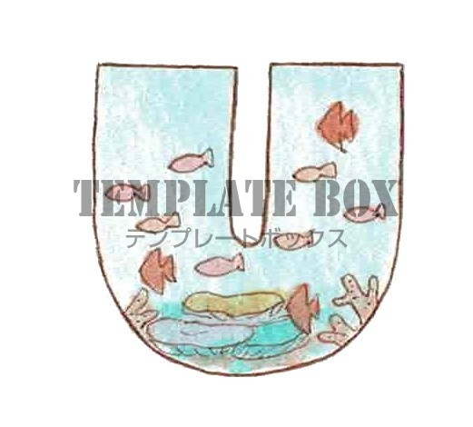 無料イラスト素材:海モチーフのフォントのアルファベットUのワンポイント