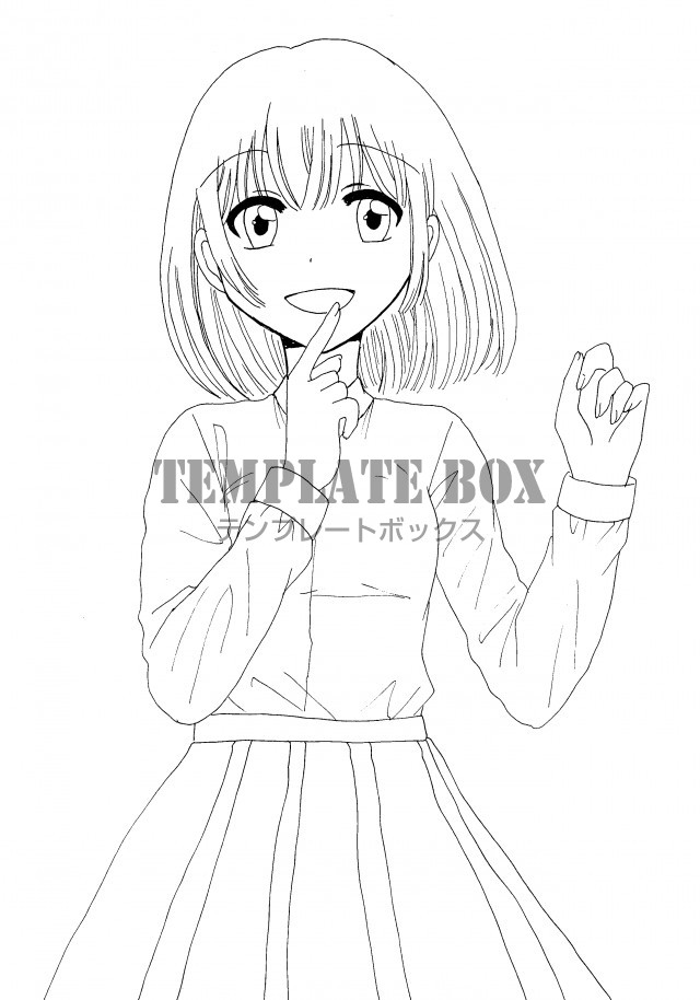 無料テンプレート:制服姿の女の子の塗り絵のイラストテンプレート素材