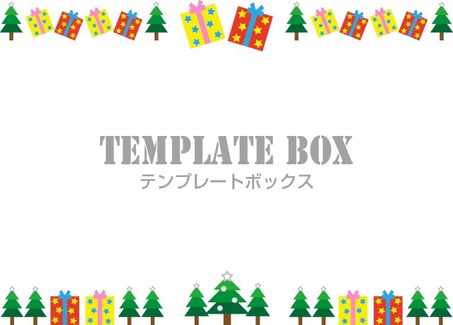 無料テンプレート:12月、クリスマスのイメージのフレーム素材、ツリーとクリスマスプレゼント