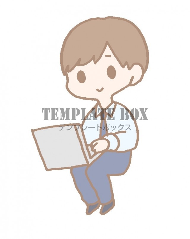 無料イラスト素材:パソコンを見ているサラリーマンのワンポイントイラスト