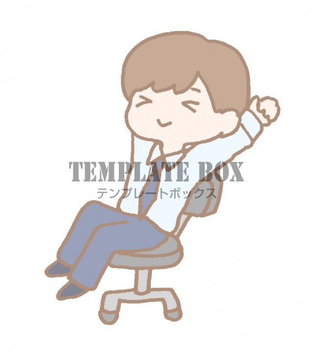 無料イラスト素材:伸びをしているサラリーマンのワンポイントイラスト