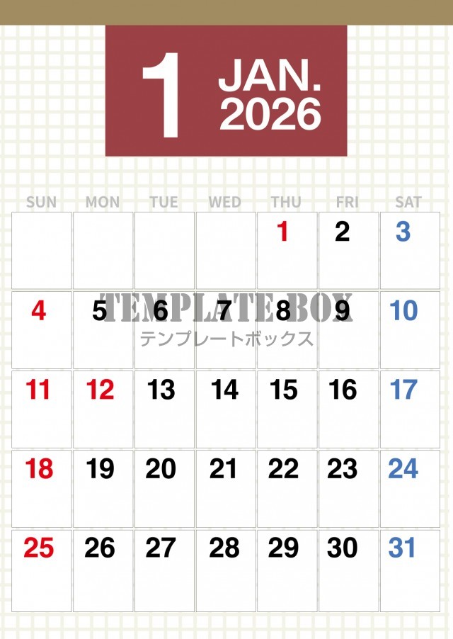 市松模様のおしゃれなカレンダーです。2026年1月カレンダーです。予定が…