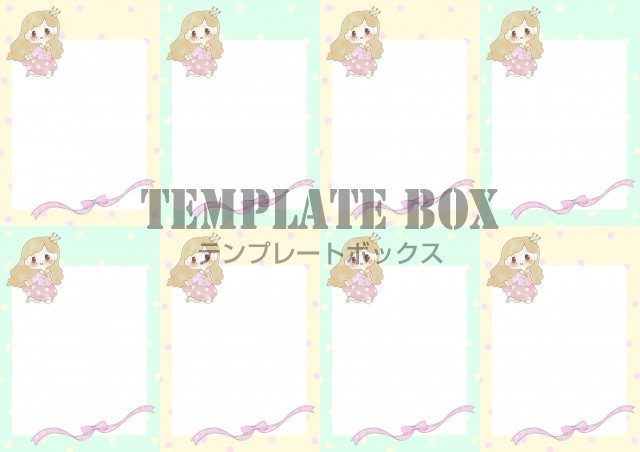 無料テンプレート:お姫様の女の子のイラスト入りかわいいメモのテンプレート素材