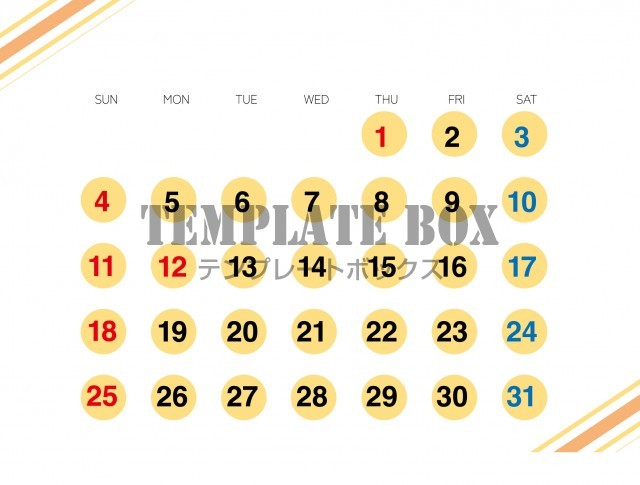 横型のシンプルなカレンダー素材です。枠で別れた日付は予定も書き込めてとて…