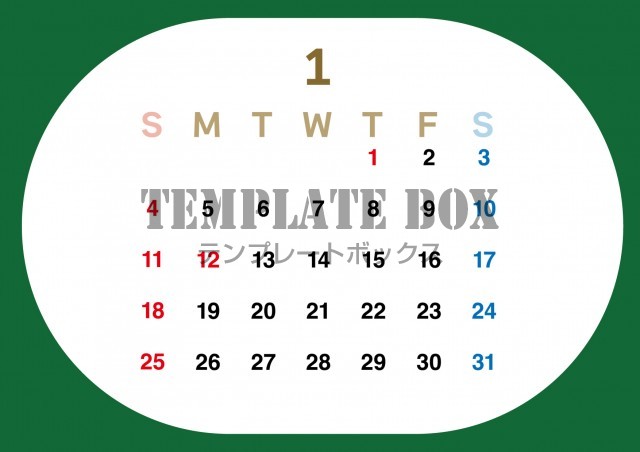 無料テンプレート:2026年1月カレンダー:横型の楕円がおしゃれなデザイン
