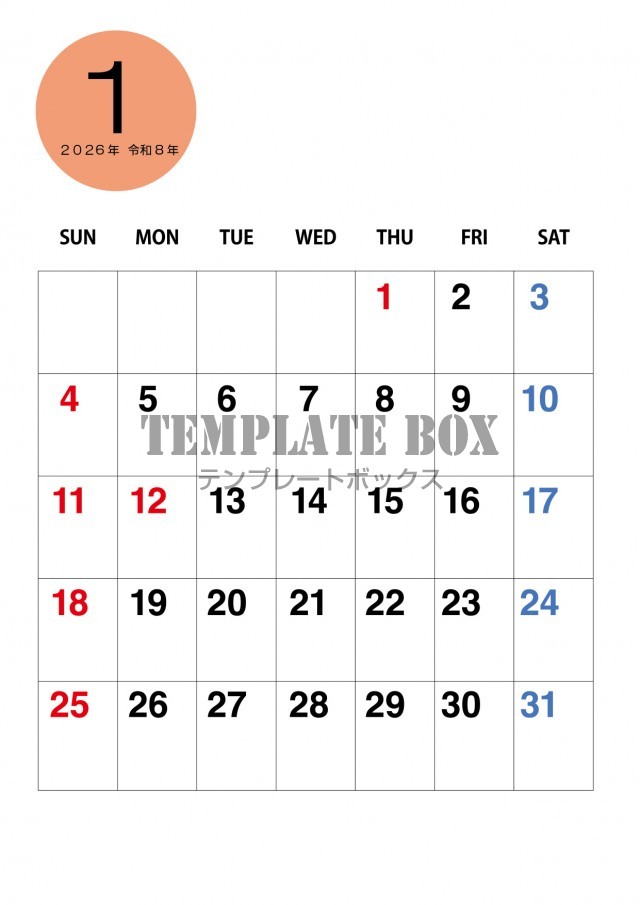 無料テンプレート:2026年1月カレンダー:縦型ビジネス用カレンダー