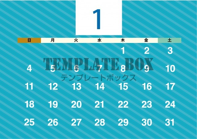 無料テンプレート:2026年1月カレンダー:横型白抜き文字カレンダー