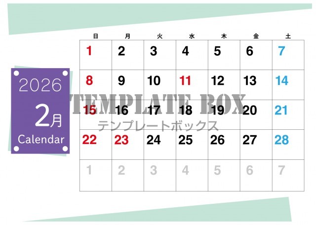 2026年2月カレンダー:縦型メモ欄付きカレンダー