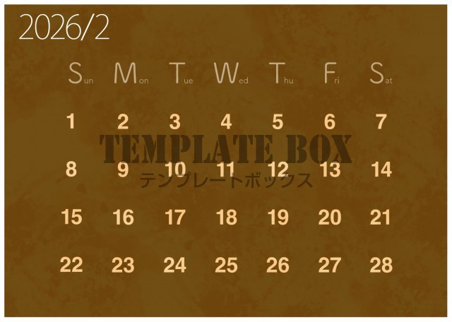 無料テンプレート:2026年2月カレンダー:横型質感あるカレンダー