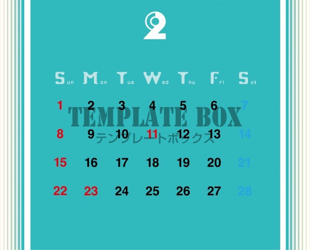 2026年2月カレンダー:ブルーのストライプカレンダー